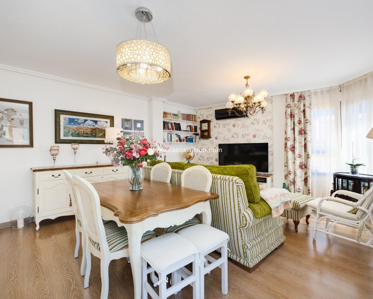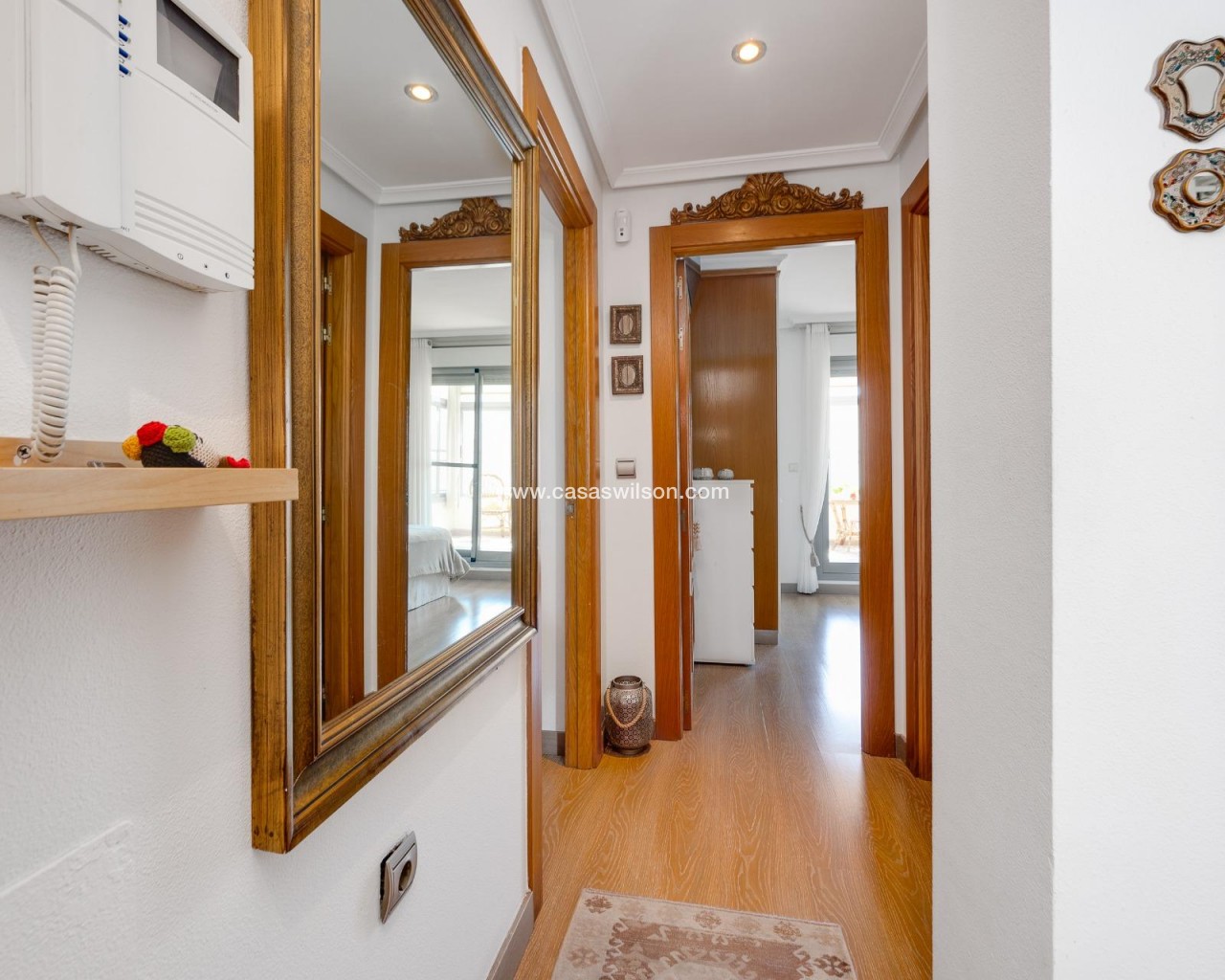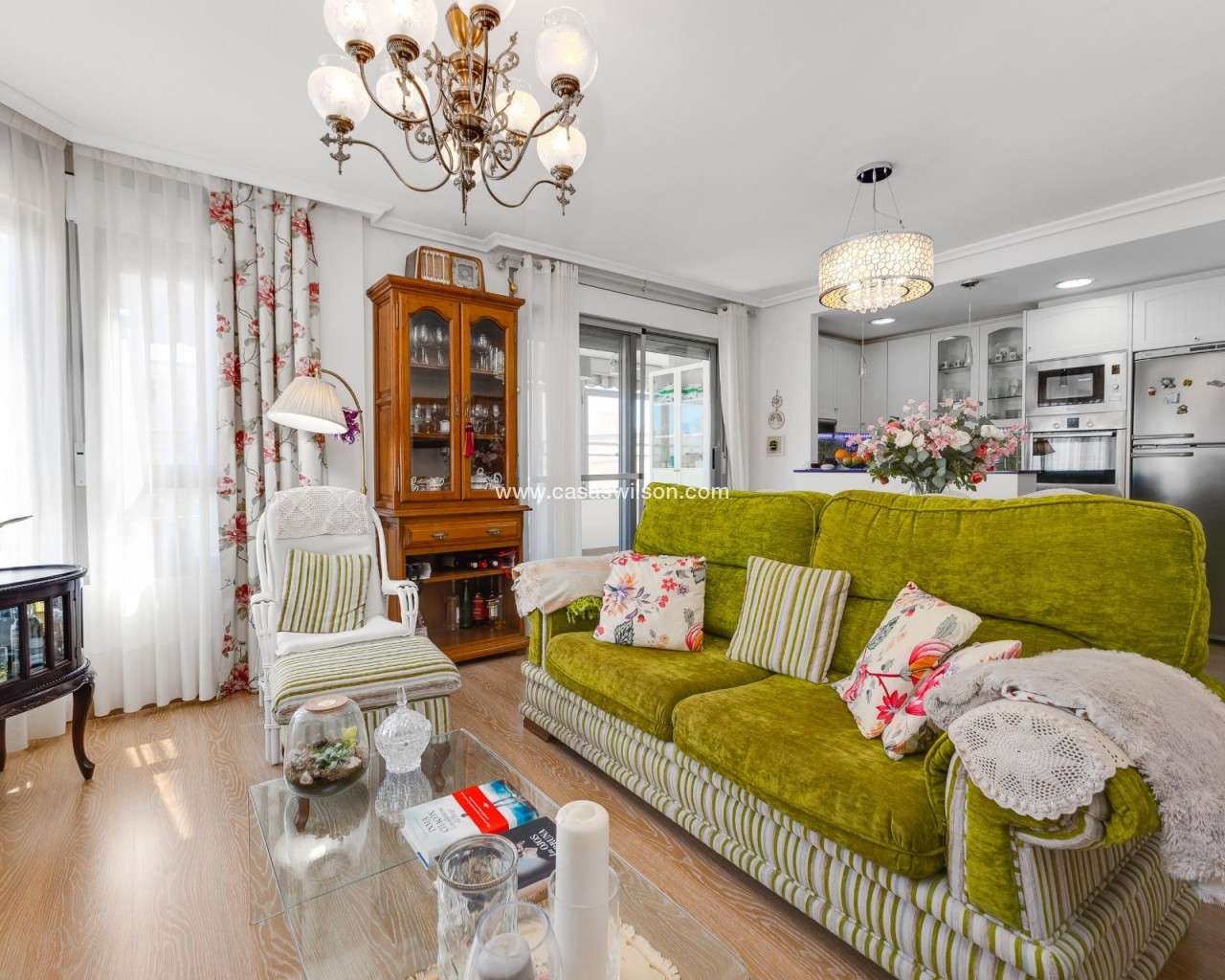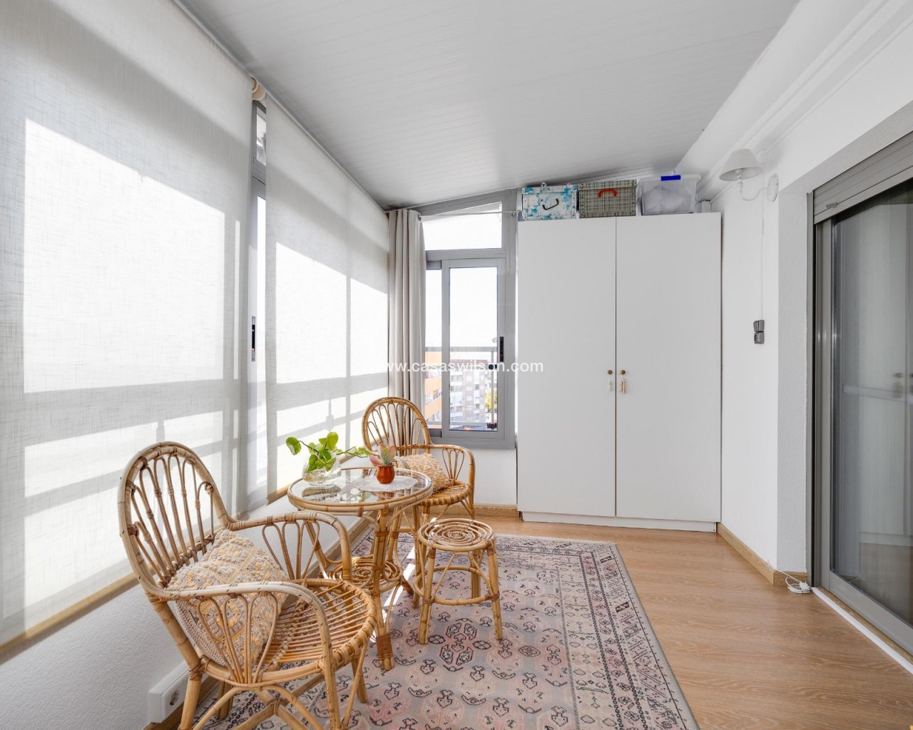 This beautiful penthouse located on the fifth floor with an elevator offers a strategic location in the center of Torrevieja, just a few meters from the Las Cañas restaurant and surrounded by all essential services such as restaurants, pharmacies, bus stops, supermarkets, etc. The property stands out for its functionality and its excellent use of natural light thanks to its dual south and east orientation. The interior is distributed into a living-dining room integrated with an open-plan kitchen, two bright bedrooms, and a fully equipped bathroom with a shower. The living room connects directly to a spacious L-shaped terrace that surrounds the property; this space is divided into a glazed area and an open area, allowing for both practical and recreational use throughout the year while enjoying open views and sea views. Additionally, the property includes a private solarium on the upper floor with wonderful views and a kitchen area, providing an additional outdoor space of great value for gatherings with friends or family. Don’t miss the penthouse you’ve always dreamed of. Contact us now and come discover your next terrace with sea views!