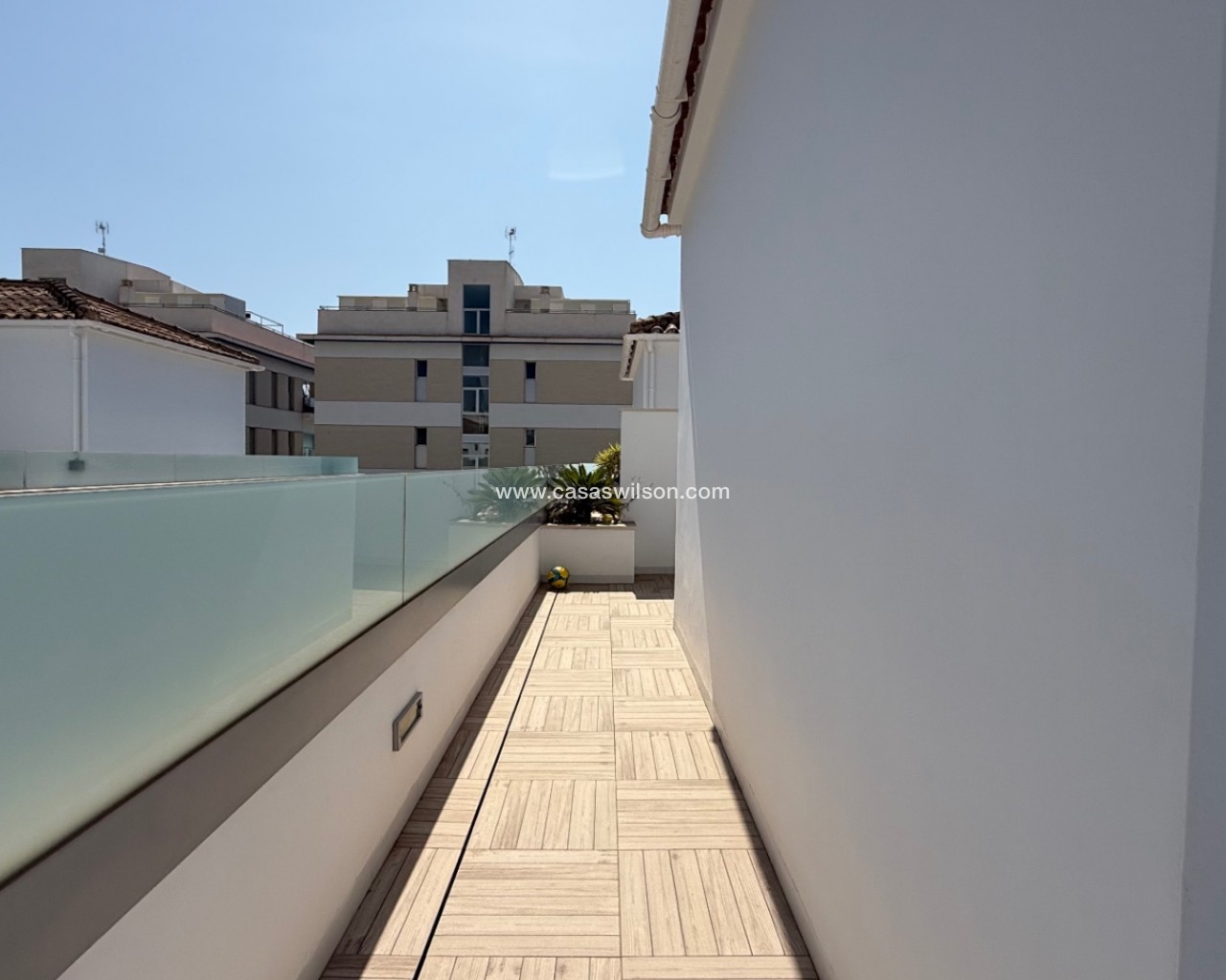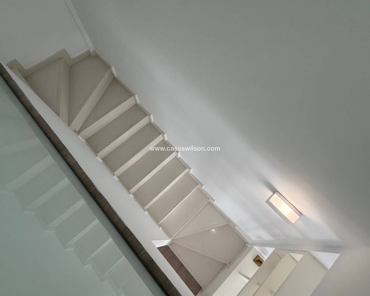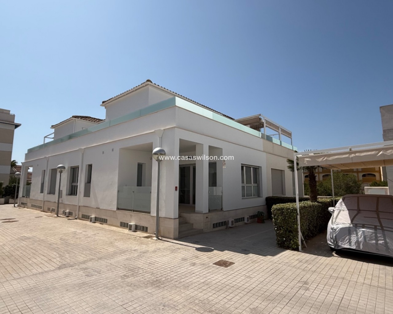 Modern Quad Villa in Los Dolses This beautifully designed modern-style quad villa is a fantastic opportunity in the sought-after area of Los Dolses, Orihuela Costa. Just minutes away from all amenities, local restaurants, street markets, golf courses, and the beach, as well as the popular Zenia Boulevard Shopping Centre. The property is sold fully equipped and move-in ready, offering a generous layout with 5 bedrooms and 3 bathrooms spread over three levels: Ground floor: bright living room, fully fitted kitchen, one bedroom, and a bathroom. Basement level: spacious second living area with natural light, two bedrooms, and a full bathroom – perfect for guests or extended family. First floor: two more bedrooms, a bathroom, and a large balcony terrace ideal for relaxing or entertaining. Additional features include LED lighting throughout, private parking space, and access to a communal swimming pool.