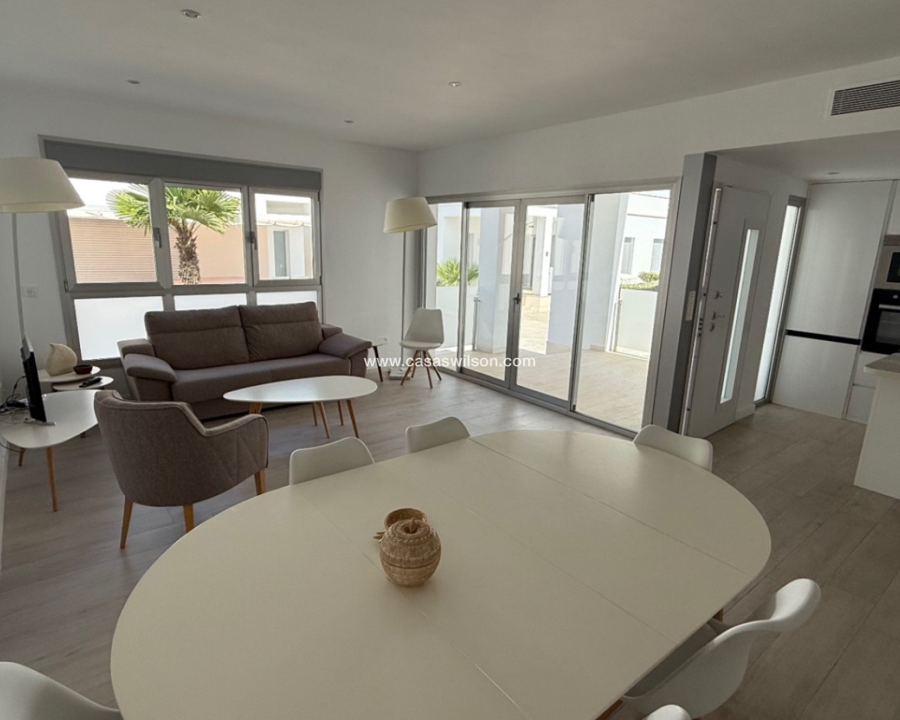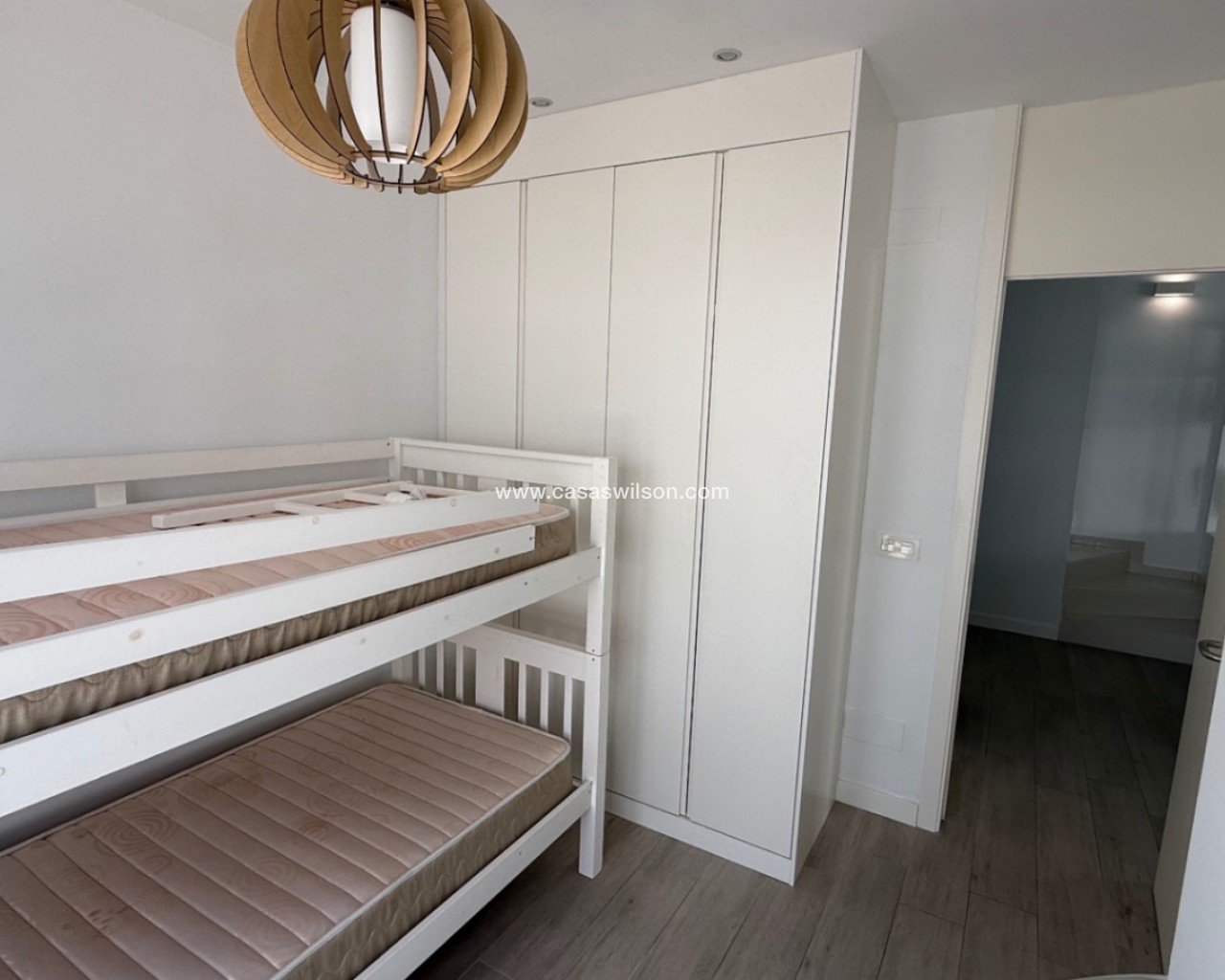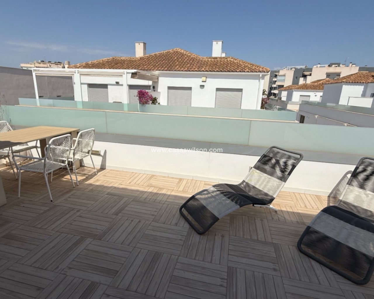 Modern Quad Villa in Los Dolses This beautifully designed modern-style quad villa is a fantastic opportunity in the sought-after area of Los Dolses, Orihuela Costa. Just minutes away from all amenities, local restaurants, street markets, golf courses, and the beach, as well as the popular Zenia Boulevard Shopping Centre. The property is sold fully equipped and move-in ready, offering a generous layout with 5 bedrooms and 3 bathrooms spread over three levels: Ground floor: bright living room, fully fitted kitchen, one bedroom, and a bathroom. Basement level: spacious second living area with natural light, two bedrooms, and a full bathroom – perfect for guests or extended family. First floor: two more bedrooms, a bathroom, and a large balcony terrace ideal for relaxing or entertaining. Additional features include LED lighting throughout, private parking space, and access to a communal swimming pool.
