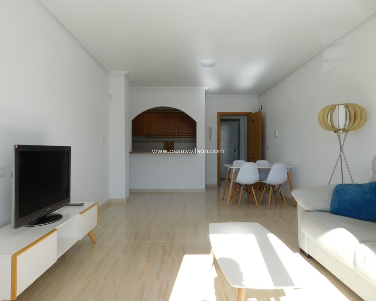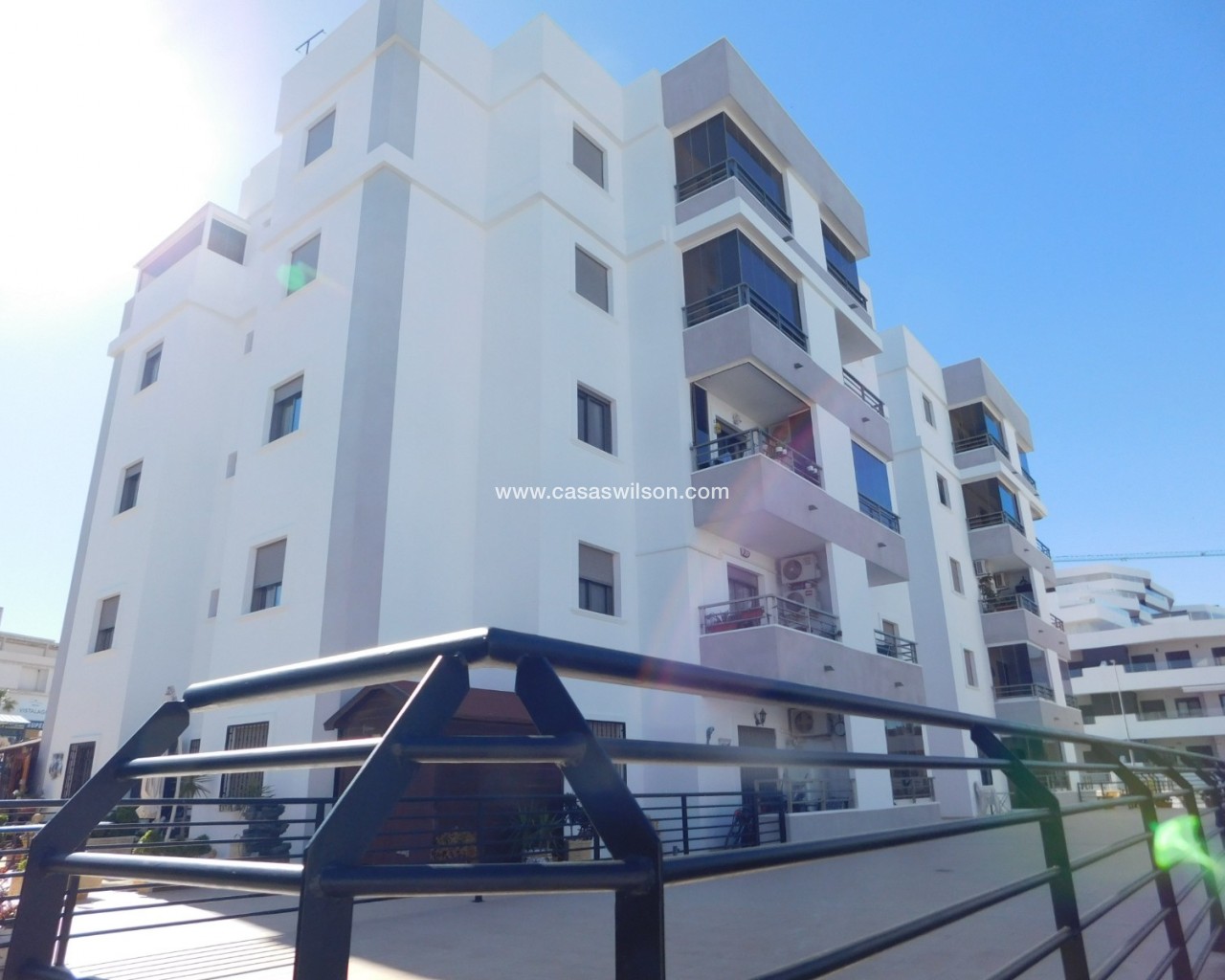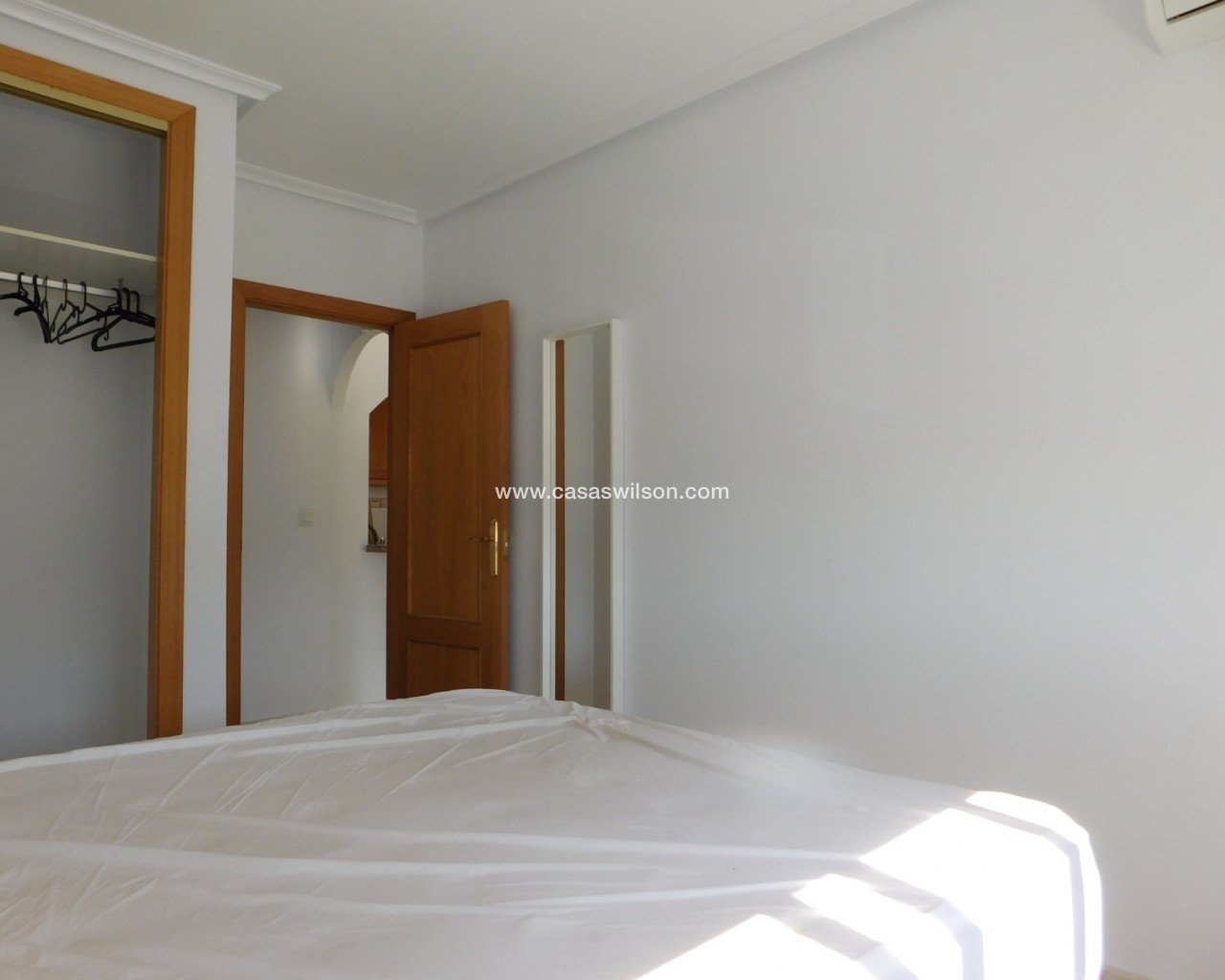 Here we have a wonderful second floor apartment with lift in the centre of San Miguel de Salinas. Consisting of 2 bedrooms and 1 bathroom. Facing east. Over looking the large town allotment with a beautiful community swimming pool and nature green areas makes this apartment a one of a kind. Also being on the corner. A brief description of the property: you enter the extensive living – dining room which has direct access to the front balcony. A great area to relax in. Offering a good-sized American style kitchen with top and bottom units, fully equipped. The hall leads to the 2 double sized bedrooms and family bathroom. Having built in wardrobes and air-conditioning in the living room and master bedroom. Fully furnished. Suma 230 per year community 576 per year. San Miguel de Salinas is a traditional Spanish village located just inland on the Southern Costa Blanca, perfectly communicated with all services, shopping centres such as Zenia Boulevard and airports of Alicante and Murcia which are 45 minutes away by car. It is only a few minutes’ drive from the beaches of La Zenia, Cabo Roig, Campoamor, Torrevieja, Playa Flamenca and Mil Palmeras. Having all you need on your doorstep with a good host of bars, restaurants, shops, supermarkets as well as a post office and the weekly Wednesday Street Market. Not forgetting about the municipal swimming pool and sports centre where there is a football pitch, tennis courts and much more. The town has its own doctors and pharmacy, with some great schools and large selection of championship golf courses nearby. The Laguna Salada Torrevieja (Salt Lake) is ideal for walking expeditions and bird watching is less than a five-minute drive away.