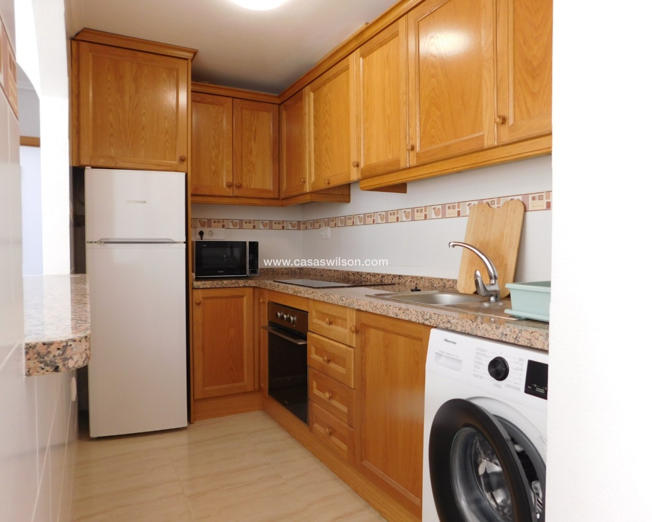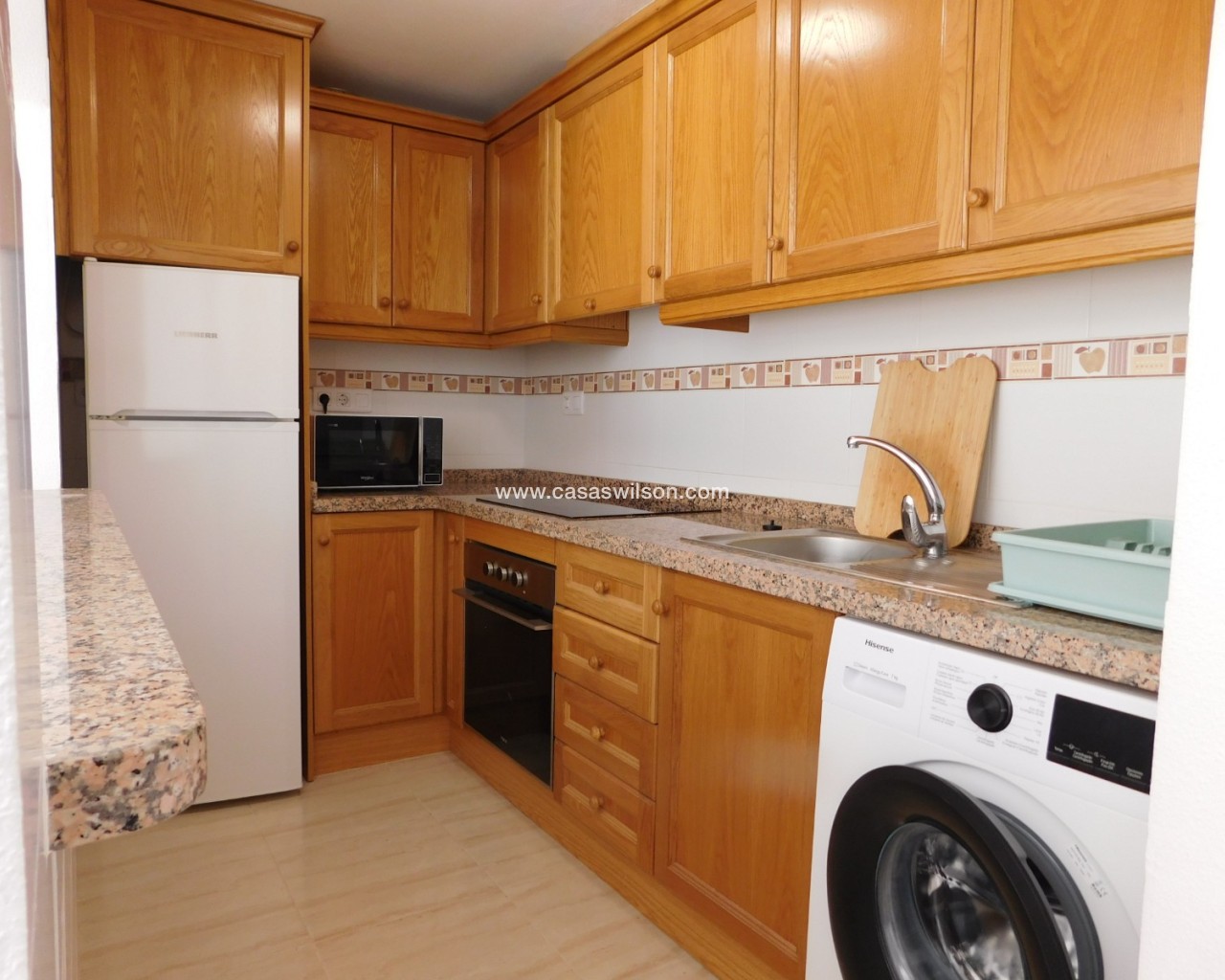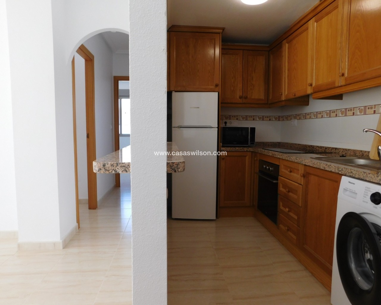 Here we have a wonderful second floor apartment with lift in the centre of San Miguel de Salinas. Consisting of 2 bedrooms and 1 bathroom. Facing east. Over looking the large town allotment with a beautiful community swimming pool and nature green areas makes this apartment a one of a kind. Also being on the corner. A brief description of the property: you enter the extensive living – dining room which has direct access to the front balcony. A great area to relax in. Offering a good-sized American style kitchen with top and bottom units, fully equipped. The hall leads to the 2 double sized bedrooms and family bathroom. Having built in wardrobes and air-conditioning in the living room and master bedroom. Fully furnished. Suma 230 per year community 576 per year. San Miguel de Salinas is a traditional Spanish village located just inland on the Southern Costa Blanca, perfectly communicated with all services, shopping centres such as Zenia Boulevard and airports of Alicante and Murcia which are 45 minutes away by car. It is only a few minutes’ drive from the beaches of La Zenia, Cabo Roig, Campoamor, Torrevieja, Playa Flamenca and Mil Palmeras. Having all you need on your doorstep with a good host of bars, restaurants, shops, supermarkets as well as a post office and the weekly Wednesday Street Market. Not forgetting about the municipal swimming pool and sports centre where there is a football pitch, tennis courts and much more. The town has its own doctors and pharmacy, with some great schools and large selection of championship golf courses nearby. The Laguna Salada Torrevieja (Salt Lake) is ideal for walking expeditions and bird watching is less than a five-minute drive away.