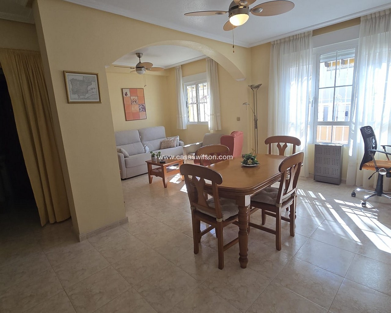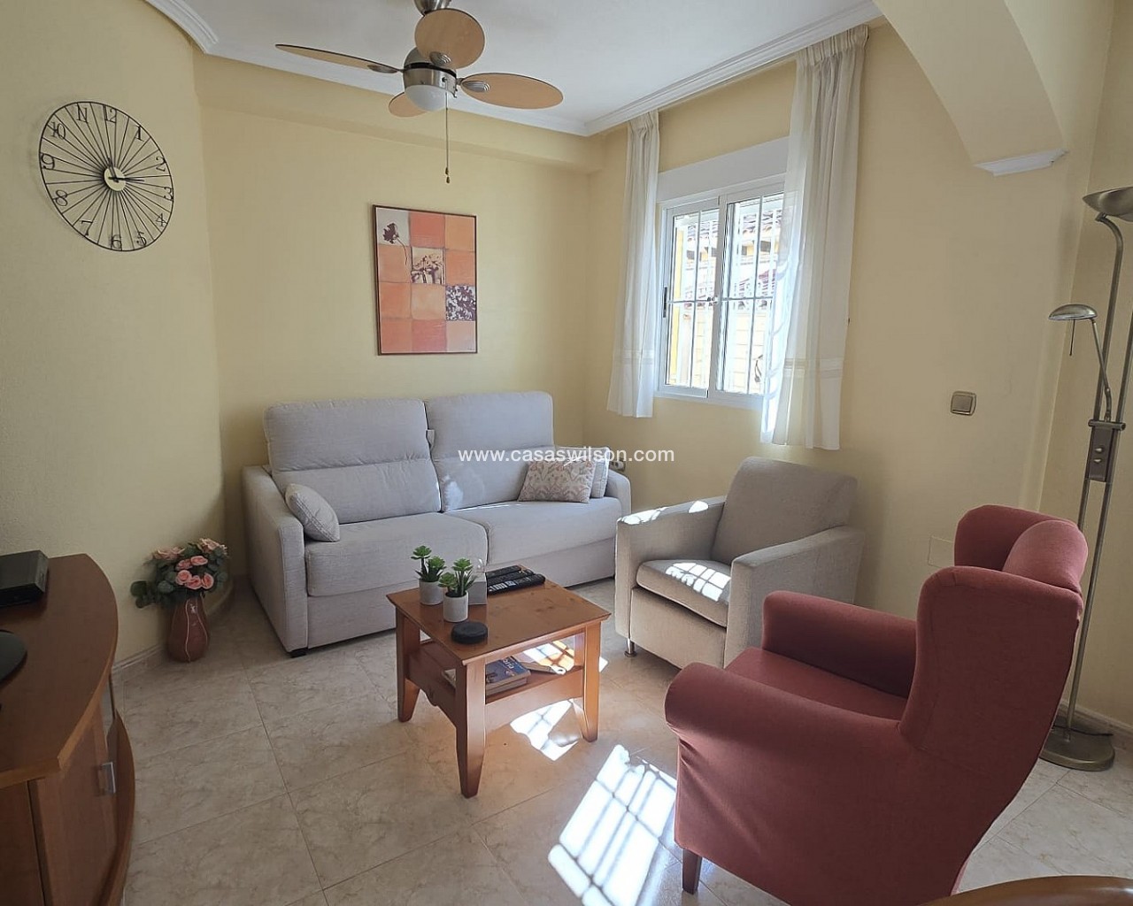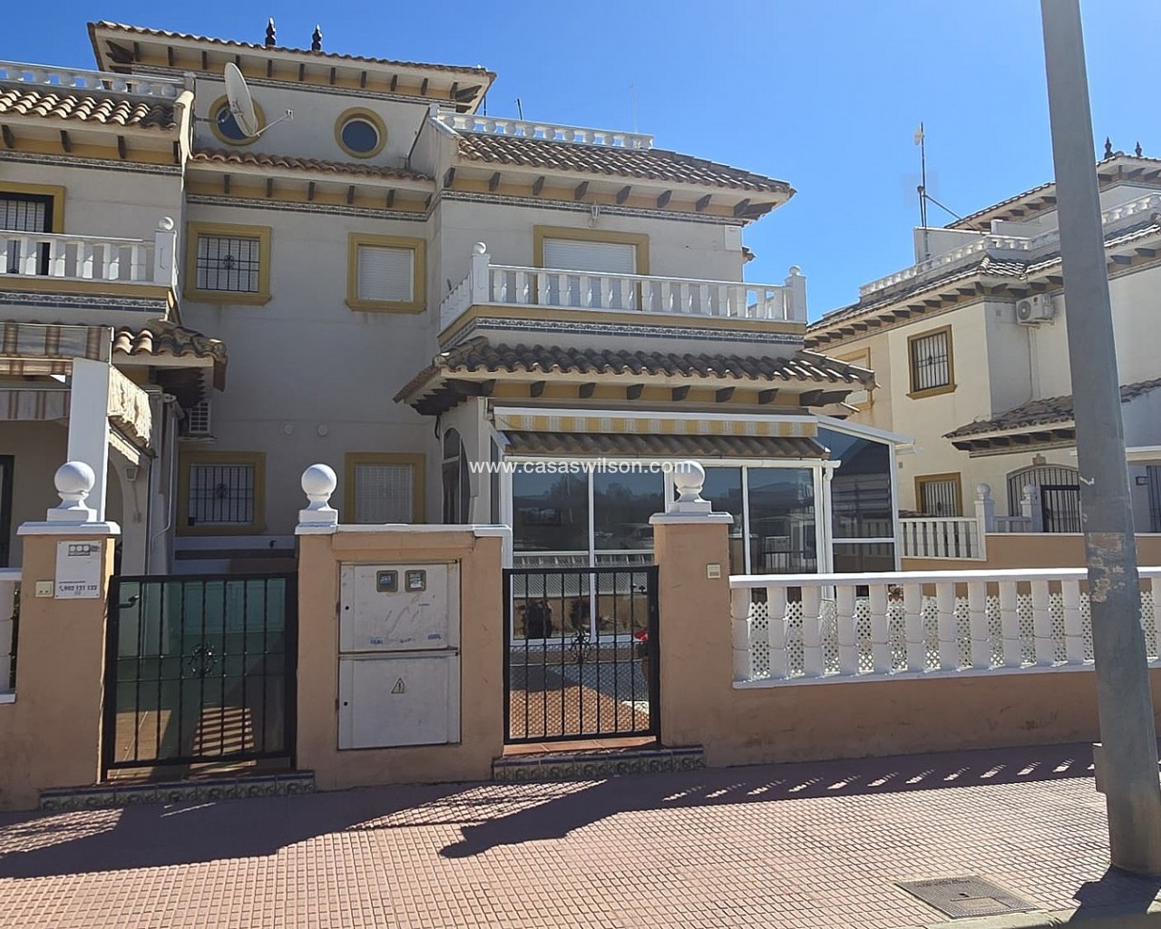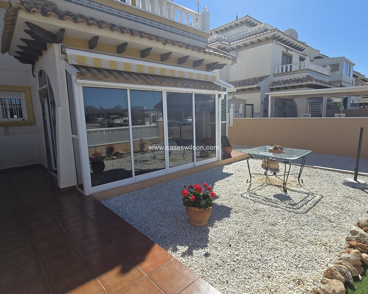 Charming Spanish home in a prime location in Orihuela Costa!. Are you looking for a charming home under the sun, close to the sea and all amenities? This beautifully located family home in the popular Orihuela Costa offers comfort, space, and plenty of outdoor living!Within a short distance, you will find stunning beaches, a lively promenade, supermarkets, restaurants, cafés, and shops.Layout & Features:Spacious, sunny south-facing front gardenLarge garden with plenty of privacy and options for outdoor dining or loungingBright conservatory, perfect as extra living space or winter sunroomCozy living room with comfortable seating areaFully equipped kitchenFirst Floor:Spacious master bedroom with plenty of natural lightSecond bedroom, ideal for guests or familyBathroom with shower, toilet, and sinkAdditional Comfort:Roof terrace with beautiful views – perfect for relaxing or sunbathingQuiet and pleasant residential areaIdeal as a permanent residence, holiday home, or investmentIn short: a move-in ready home in a fantastic location with everything you need for the ultimate Spanish lifestyle!