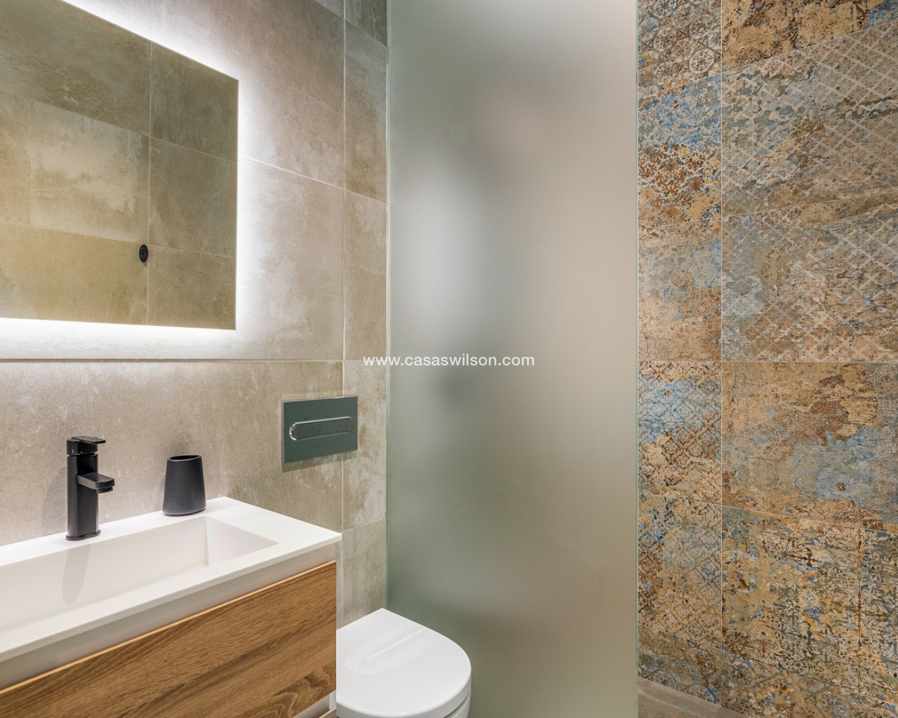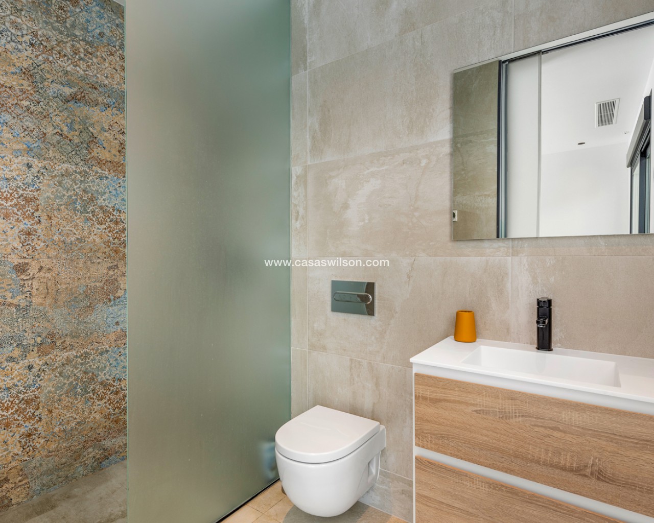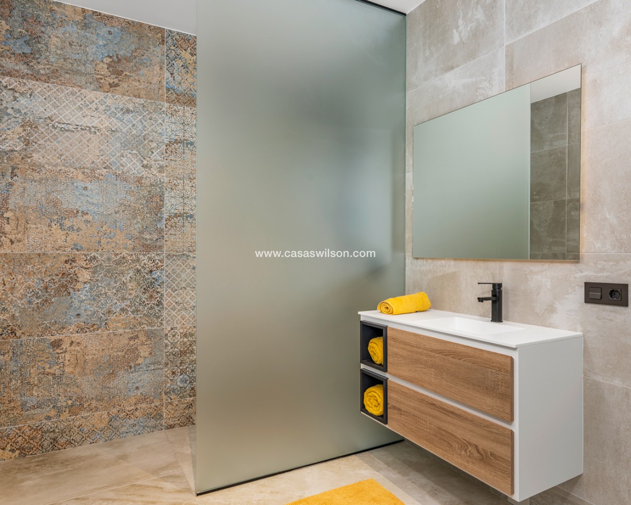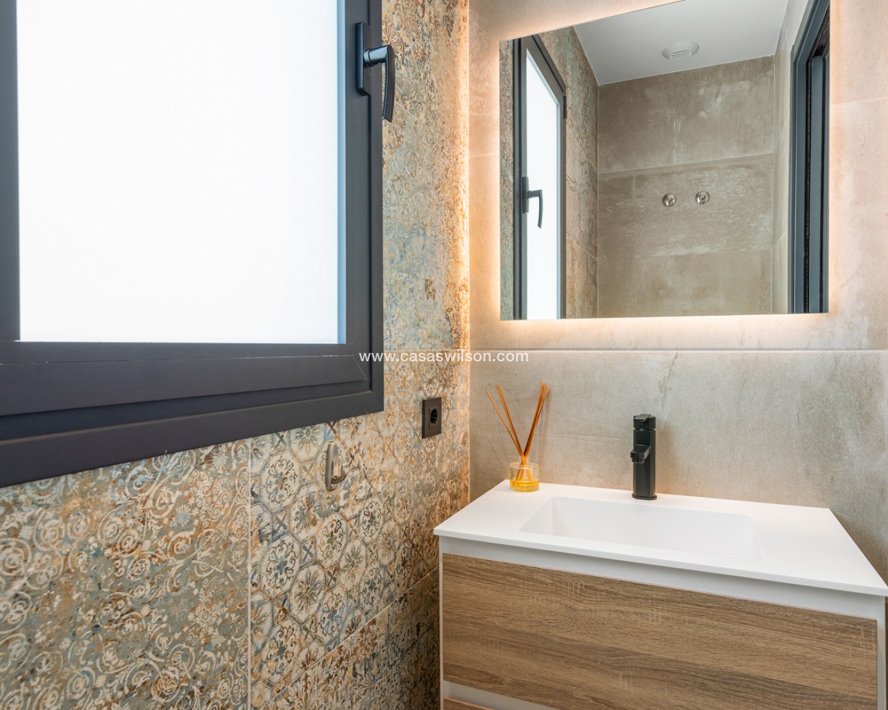 Luxury 5 bedroom / 6 bathroom villa with views in Ciudad Quesada. Beautiful luxury villa with a total living area of 333 m2 divided on two levels. It consists of a total of 5 double bedrooms, all of them with en-suite bathrooms, an additional bathroom and a guest toilet. The main floor consists of two bedrooms with en-suite bathrooms, a guest toilet, and a lovely open plan kitchen, living room and dining room. In the living area you have large sliding doors that opens up completely and gives a great indoor / outdoor living feature. The lower level consists of three bedrooms with en-suite bathrooms, a kitchen and utility room, a large living room, a bathroom, two storage rooms. The rooms in this level have access to a lovely patio. From the living room on this level you have direct access to the garage and techical room. The villa is equipped with central air condition (hot/cold), underfloor heating in the bathrooms, double glazes windows and security door. Outdoor areaThe villa is set on a lovely corner plot of 462 m2. The pool area is east facing, giving you amazing views over the surrounding area and to the sea. Around the pool you have a beautiful tiled area with space for several outdoor seating areas and sun beds. From the pool area you have external stairs leading you to the large roof terrace. Here you have one part that is tiled and the other part with artificial grass, both of them with a lot of space for outdoor entertainment and with amazing views. At the entrance to the house you have another lovely tiled garden area that faces west. This area is perfect to enjoy the afternoon / evening sun. At the lower level you can find a large tiled patio with an artificial vertical garden. This patio can be access from the garden through external stairs, and also from the living room and 2 of the bedrooms in the lower level.