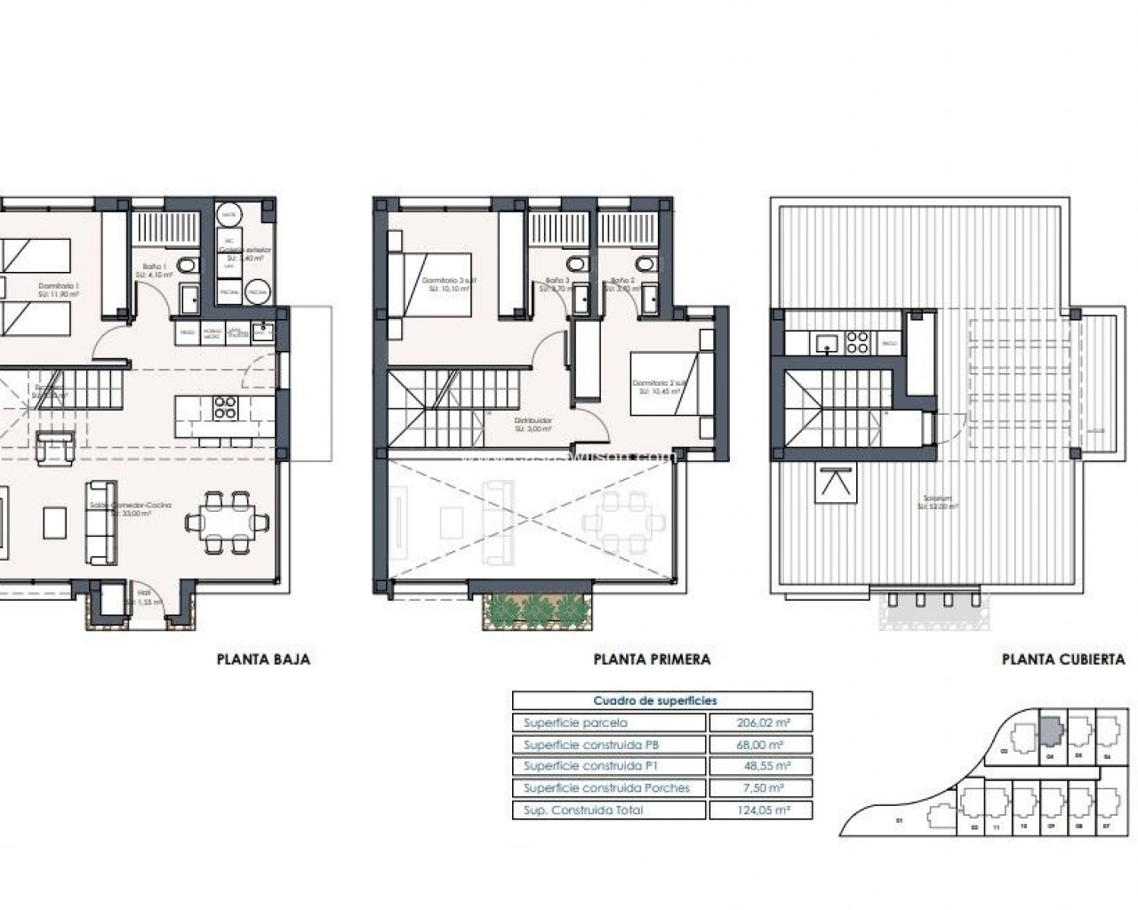NEW BUILD RESIDENTIAL OF VILLAS IN LOS MONTESINOS New Build villas with 3 bedrooms and 3 bathrooms, open plan kitchen with living room-dining room. All villas have a terrace, a private swimming pool, a private garden, and a driveway. Basements are also available at an extra cost. They are all built with high-quality materials using advanced technology for our clients’ comfort and convenience. The typical town of Los Montesinos is strategically located 10 minutes by car from the beaches and leisure of Torrevieja (with all the services of a big city: theatre, 2 hospitals, international schools, etc.), from several golf courses and with easy access to the A7 motorway to reach Alicante airport in 20 min. In the urbanization there are supermarkets and bars for day-to-day service, being a rural and quiet environment. The climate in this area guarantees 300 days of sunshine a year with an average temperature of 20ºC, which, together with the rich gastronomy and cultural and sports activities available in its surroundings, makes this area an ideal place to establish a second residence for vacation or a quiet place to live permanently.