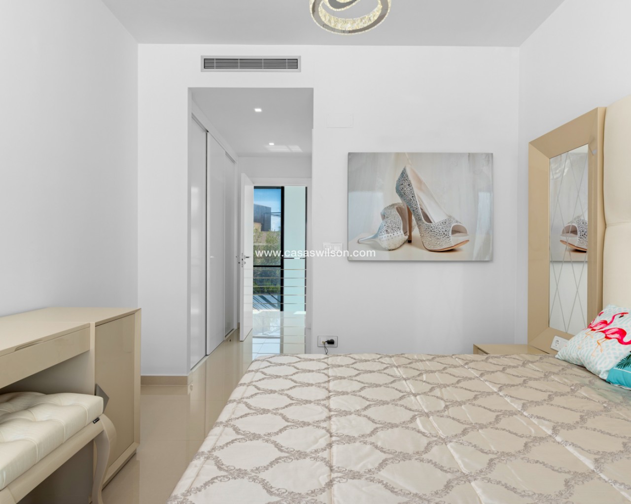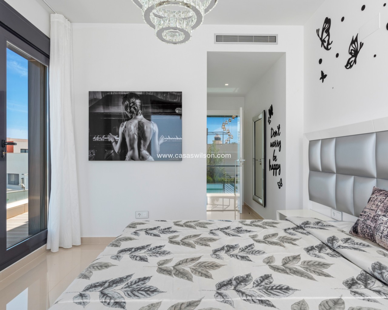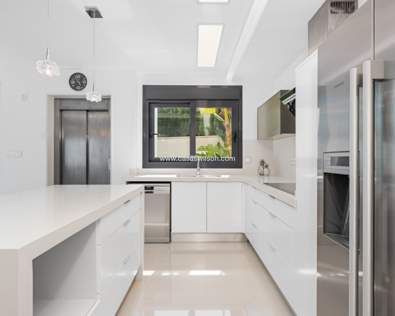 Luxury villa with 5 bedrooms and incredible views This recently built luxury property has a total of 5 bedrooms and 4 bathrooms, distributed over two floors and a basement, with a practical elevator that communicates with all the floors of the house and a beautiful glass staircase with interior lighting. In the basement we find a game room (with billiards and table football), a room for celebrations with a full kitchen, 2 bedrooms, 2 storage rooms and a full bathroom. On the main floor we find the living-dining room with an open-concept kitchen and central island, the main bedroom with an en-suite bathroom, as well as a laundry room and a toilet. On the first floor there are 2 spacious bedrooms, 2 bathrooms and access to the balconies. On the top floor we find an incredible 70m2 solarium with impressive panoramic views. EquipmentIt has air conditioning, its own parking for several vehicles, central heating with underfloor heating throughout the house and is for sale furnished with designer furniture and totally equipped, except for personal belongings. The house also has a pellet machine to heat the house, as well as solar panels and an electric water heater. The house includes security windows and doors, with keyed keys, as well as a security system with sensors in all rooms. The equipment is of high quality, including: motorized sofas, brand new mattresses, steam oven with pyrolysis, combo fridge that makes normal and crushed ice. Outdoor spaceIn the garden we find a private pool with waterfall, jacuzzi and hydromassage. The space around the pool is well cared for, decorated with a large amount of vegetation. Next to the pool we find an outdoor shower. Finally, there is also parking for several cars within the plot. AreaResidencial Bellavista is located in one of the areas with the best views of the Costa Blanca. In the municipality of San Miguel de Salinas, just 7 kilometers from the beaches of Orihuela, surrounded by golf courses, the most important shopping center in the area that has all kinds of services, as well as bars, restaurants, shops clothes, supermarkets, etc. This residential is ideal for lovers of nature and tranquility.